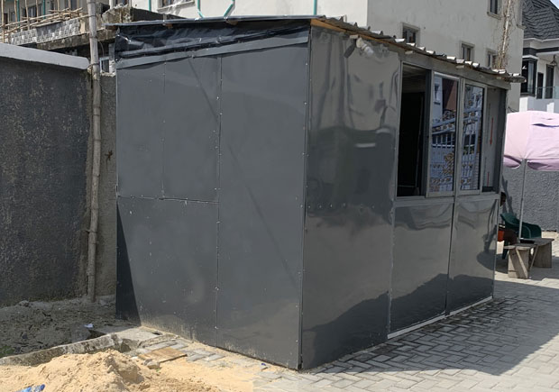 This Security Kiosk was built in 5 days by Redcity for a security company based in Lagos Nigeria in January 2023. It was delivered to a brand new estate and was able to serve as a post for its security intel while the estate continued development.